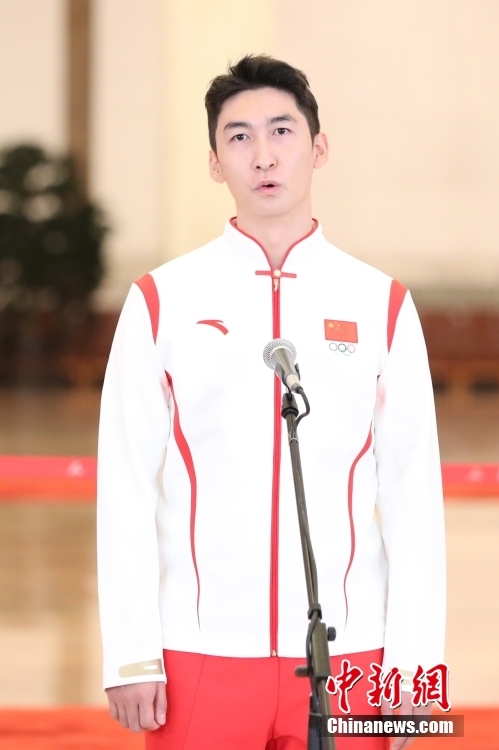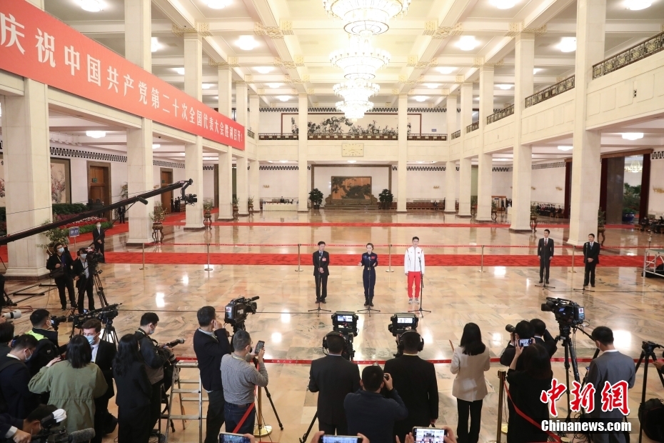 10月16日,中國(guó)共產(chǎn)黨第二十次全國(guó)代表大會(huì)在北京人民大會(huì)堂開(kāi)幕。大會(huì)開(kāi)幕前,舉行“黨代表通道”采訪活動(dòng)。圖為武大靖代表接受采訪。 中新社記者 蔣啟明 攝