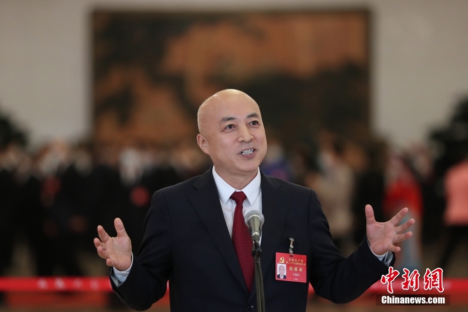 10月16日,中國(guó)共產(chǎn)黨第二十次全國(guó)代表大會(huì)在北京人民大會(huì)堂開(kāi)幕。大會(huì)開(kāi)幕前,舉行“黨代表通道”采訪活動(dòng)。圖為周偉代表接受采訪。 中新社記者 蔣啟明 攝