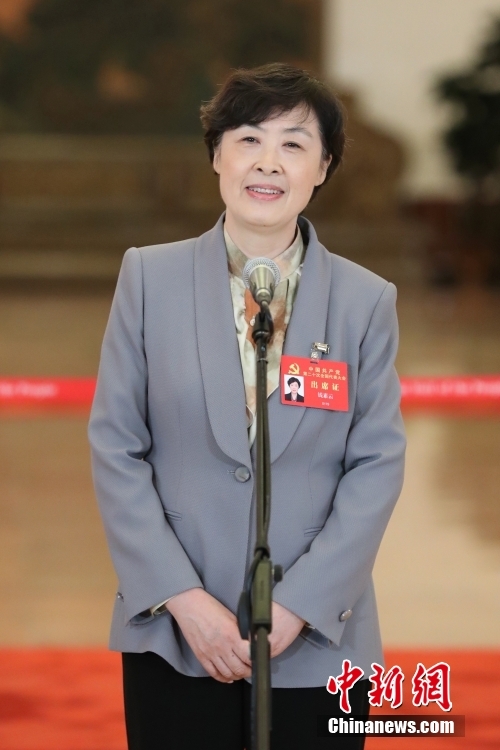 10月16日,中國(guó)共產(chǎn)黨第二十次全國(guó)代表大會(huì)在北京人民大會(huì)堂開(kāi)幕。大會(huì)開(kāi)幕前,舉行“黨代表通道”采訪活動(dòng)。圖為錢(qián)素云代表接受采訪。 中新社記者 蔣啟明 攝