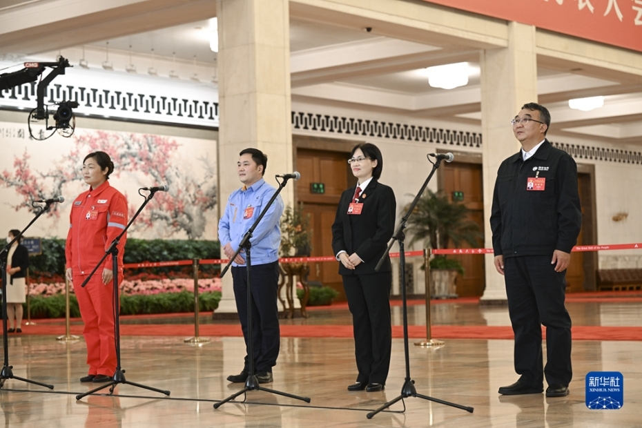 10月22日,中國共產(chǎn)黨第二十次全國代表大會(huì)閉幕會(huì)在北京人民大會(huì)堂舉行。這是閉幕會(huì)后,楊新泉、劉秀祥、石玉蓮、安長明代表(自左至右)接受采訪。新華社記者 金良快 攝 圖片來源:新華網(wǎng)
