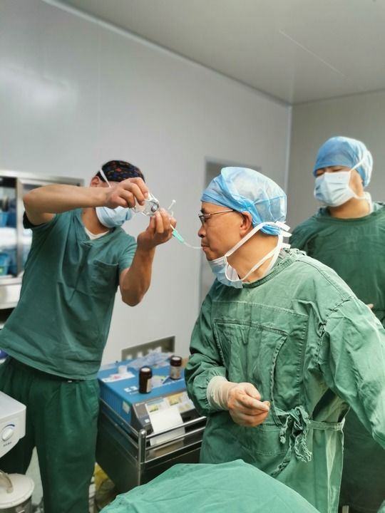 2021年12月24日,重慶醫(yī)科大學(xué)附屬第一醫(yī)院胸心外科副主任、醫(yī)療人才“組團(tuán)式”援藏重慶醫(yī)療隊(duì)隊(duì)長(zhǎng)蔣迎九(前)半夜急診,長(zhǎng)時(shí)間手術(shù)術(shù)中采用特殊方式飲水解渴。新華社發(fā)