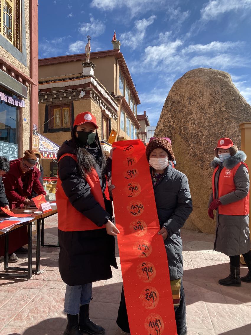 “寫(xiě)春聯(lián)、貼春聯(lián)是中華民族的傳統(tǒng)年俗,我們希望用義寫(xiě)春聯(lián)的方式,讓傳統(tǒng)文化更加貼近群眾,也讓人們留住過(guò)年的美好記憶?!崩硖量h書(shū)法協(xié)會(huì)會(huì)長(zhǎng)昂旺曲批說(shuō)。