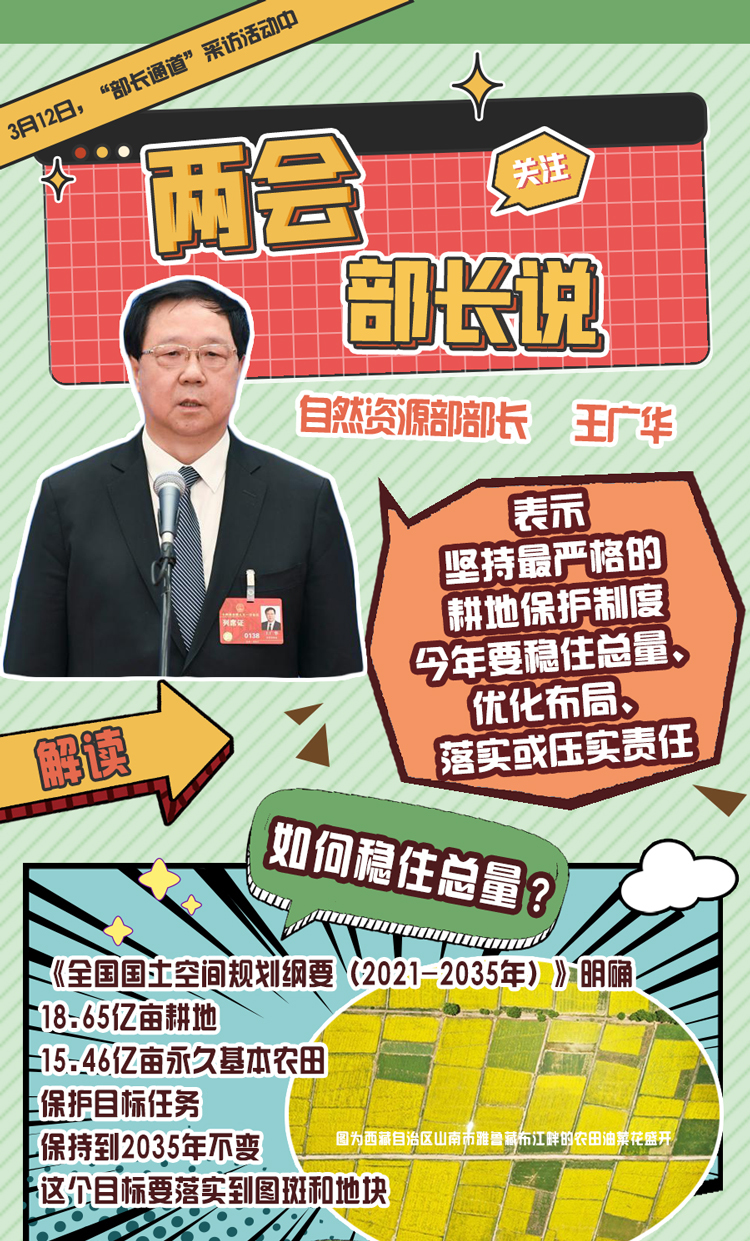 自然資源部部長(zhǎng)王廣華12日在十四屆全國(guó)人大一次會(huì)議第三場(chǎng)“部長(zhǎng)通道”上回應(yīng)熱點(diǎn)話題時(shí)表示,我國(guó)將堅(jiān)守耕地紅線,確保礦產(chǎn)資源安全,促進(jìn)綠色發(fā)展。 >>