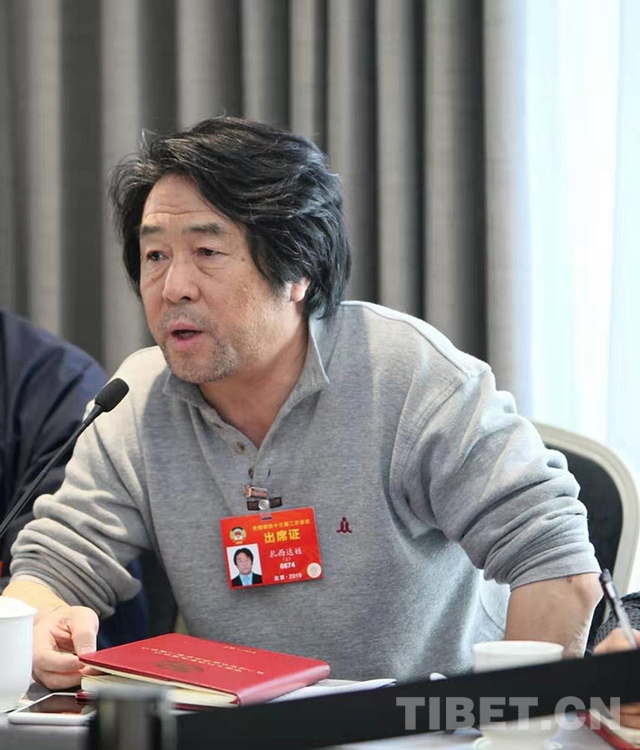 圖為第十四屆全國政協(xié)委員、西藏自治區(qū)政協(xié)副主席、自治區(qū)文聯主席扎西達娃