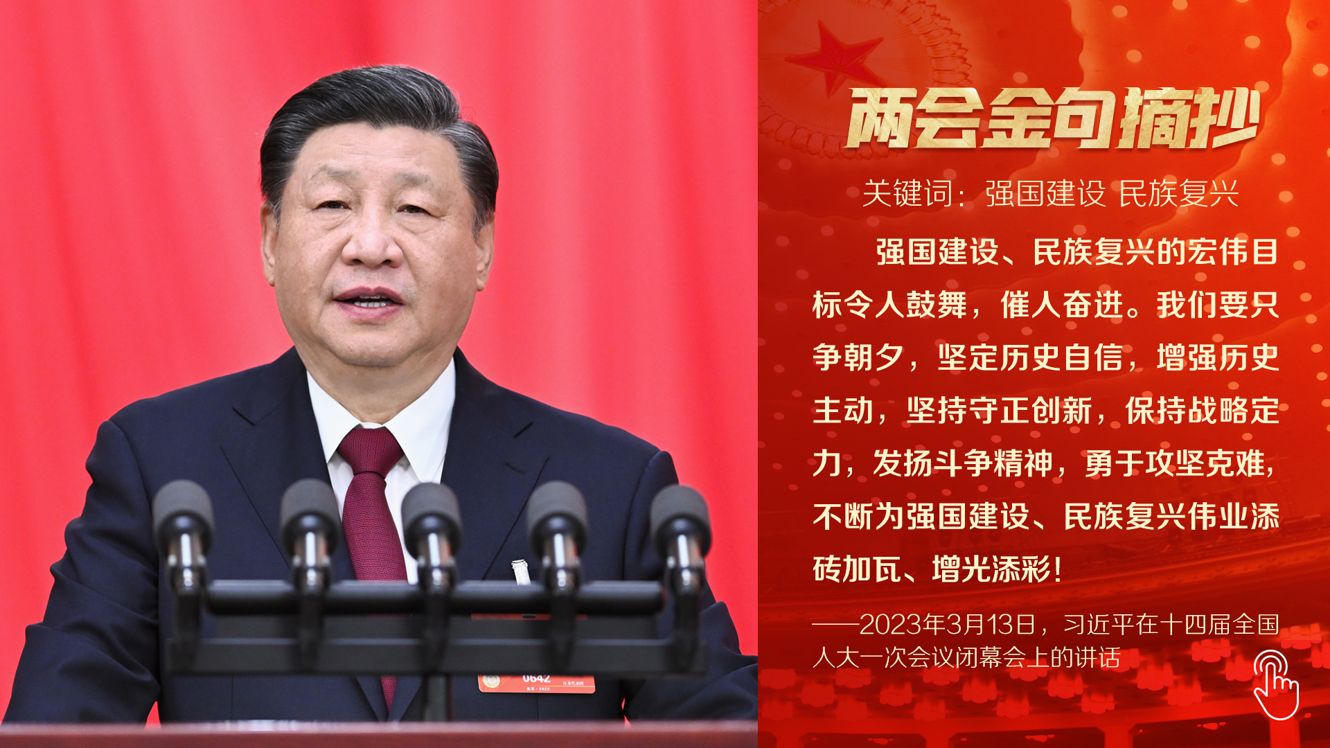 “在新征程上作出無負時代、無負歷史、無負人民的業(yè)績,為推進強國建設(shè)、民族復(fù)興作出我們這一代人的應(yīng)有貢獻!”2023年全國兩會閉幕之際,習(xí)近平總書記發(fā)出的號召,澎湃人心,催人奮進。