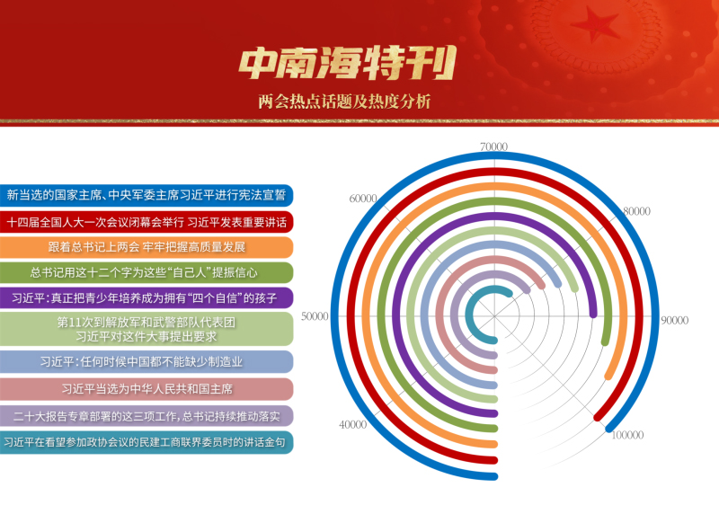 3月,世界目光,聚焦北京。近3000名中外記者采訪報道全國兩會。央視網(wǎng)“智聞”系統(tǒng)提取分析兩會期間全網(wǎng)時政新聞熱點顯示,習(xí)近平總書記的兩會關(guān)切吸引全網(wǎng)目光,新征程領(lǐng)路人的人民情懷成為網(wǎng)友“兩會印象”最深刻的主題之一。