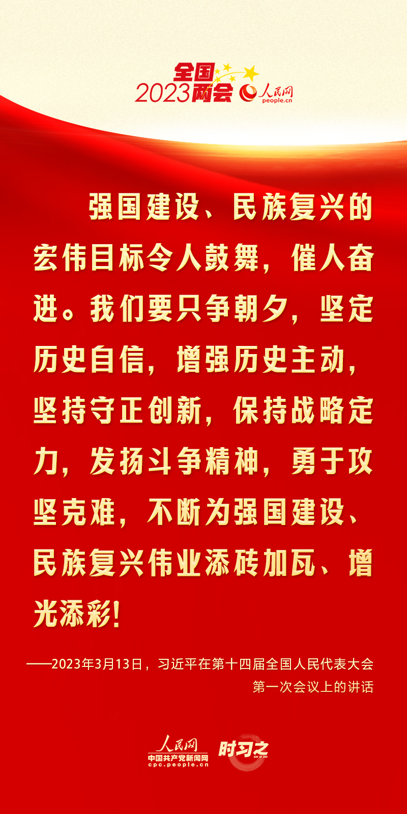 3月13日,第十四屆全國人民代表大會第一次會議在北京人民大會堂閉幕。中共中央總書記、國家主席、中央軍委主席習(xí)近平發(fā)表重要講話。鏗鏘的話語,催人奮進。
