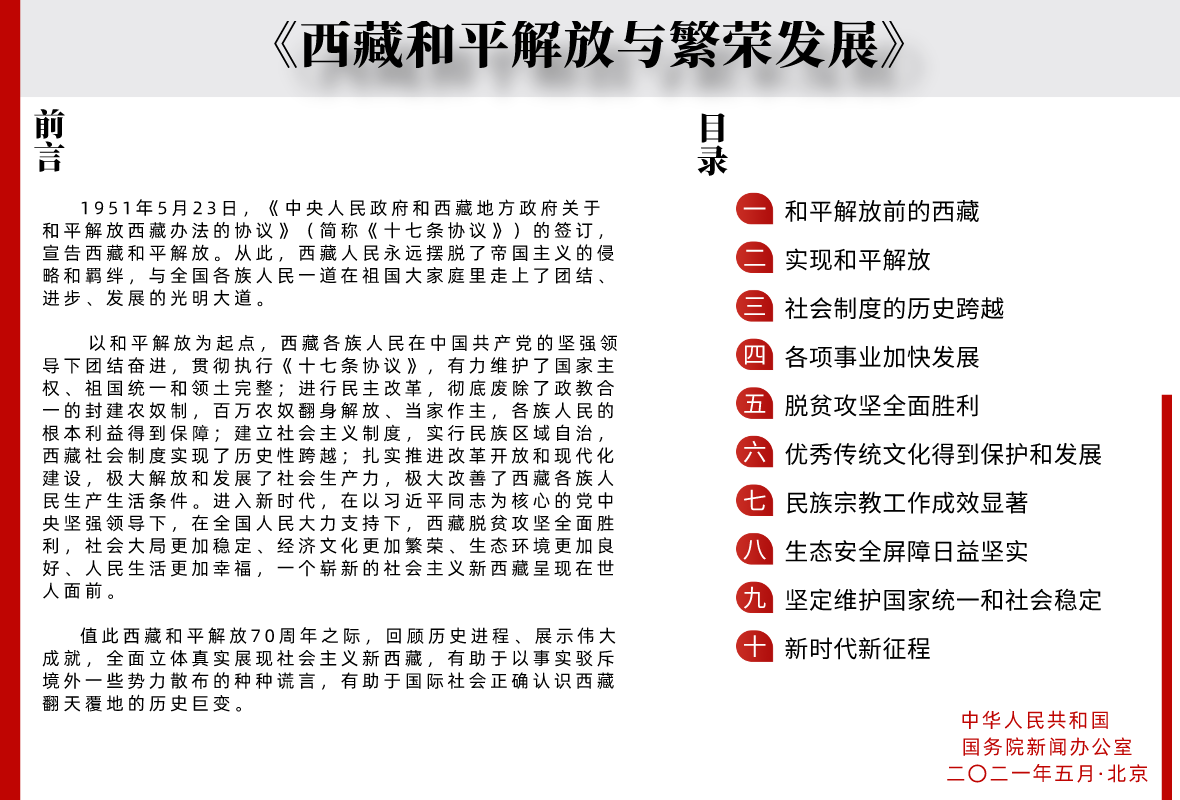 國務(wù)院新聞辦發(fā)表《西藏和平解放與繁榮發(fā)展》白皮書
