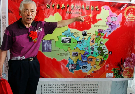 毛澤東圖片收藏者梁國(guó)忠講述自制的開國(guó)領(lǐng)袖毛澤東主席《祖國(guó)大地處處有您的足跡》的中國(guó)地圖。