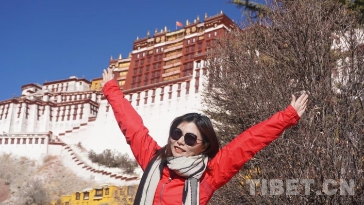 圖為吳女士在布達(dá)拉宮前拍照留念(吳女士供圖)