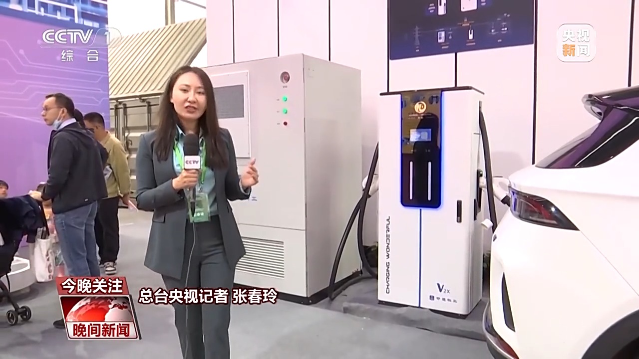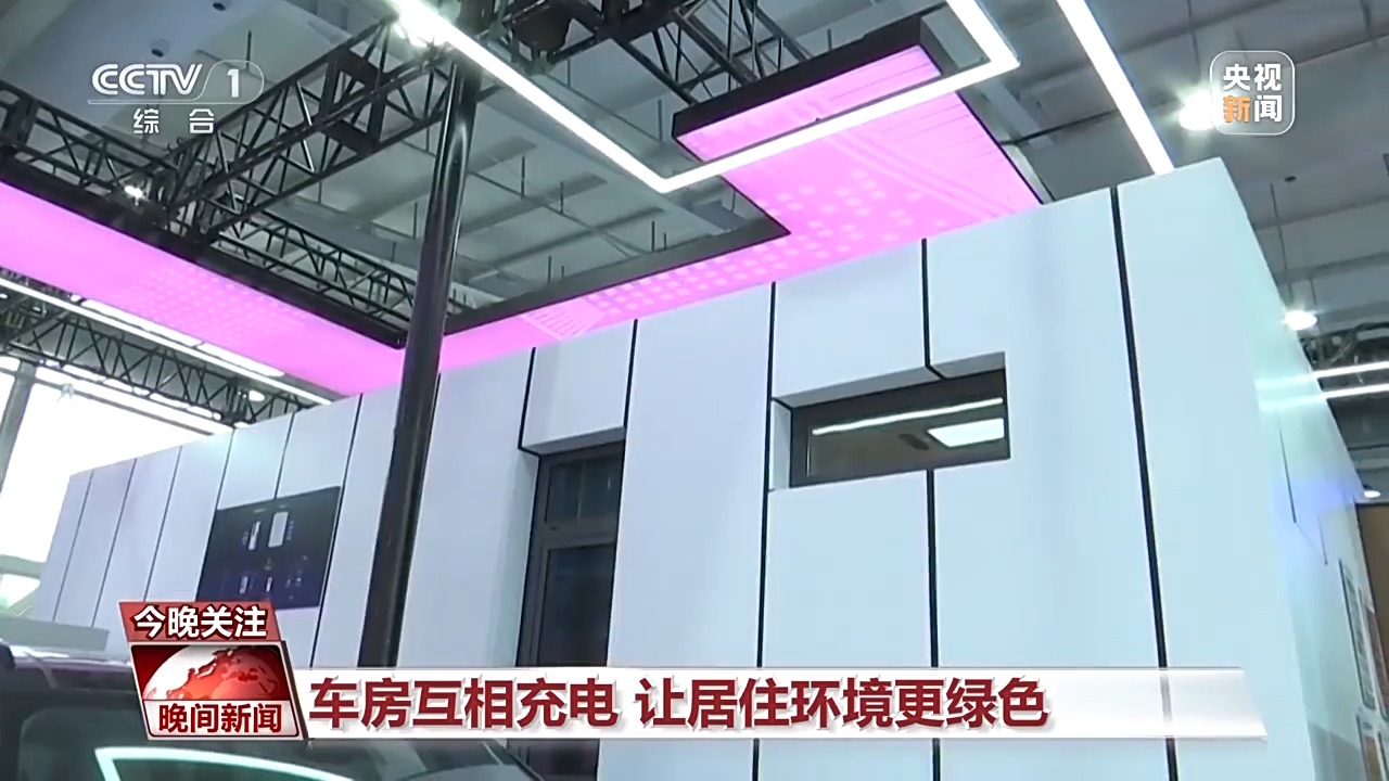 總臺央視記者 張春玲:在我們房子的頂部還有一個神秘的裝備就是新能源電池板,通過新能源電池板對太陽能的收集之后,它可以放在房屋這一側(cè)的儲能箱里,同時,它旁邊還有一個雙向的充電樁,這個充電樁可以給我們的新能源電池汽車進(jìn)行充電,同時房子的能源匱乏的時候,我們的新能源汽車還可以反向的給這個房子放電,實現(xiàn)了能源循環(huán)利用。