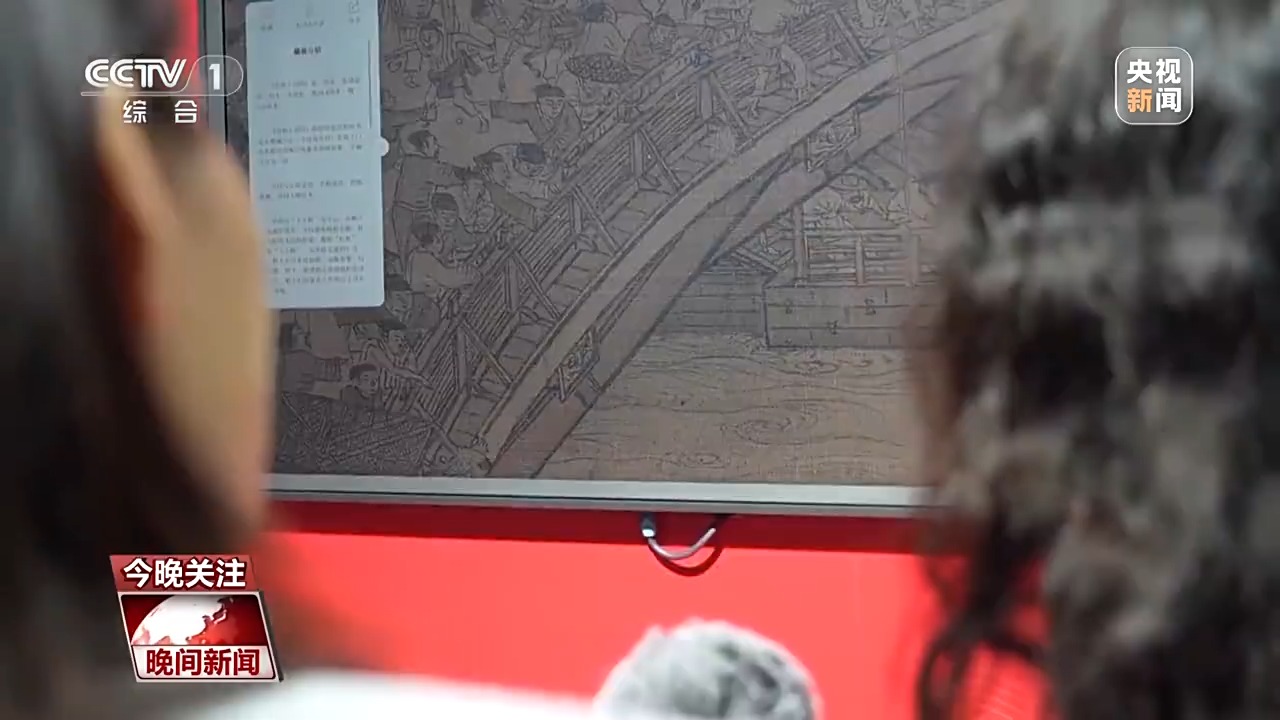 第七屆數(shù)字中國建設(shè)峰會參展商 翟芮:比如說這幅清明上河圖,采用了超高清的采集,可以把整個畫作無限放大,比如這個細(xì)節(jié)是在橋上有兩隊人馬,他們兩個起了沖突,互不相讓,周圍這些是看熱鬧的。