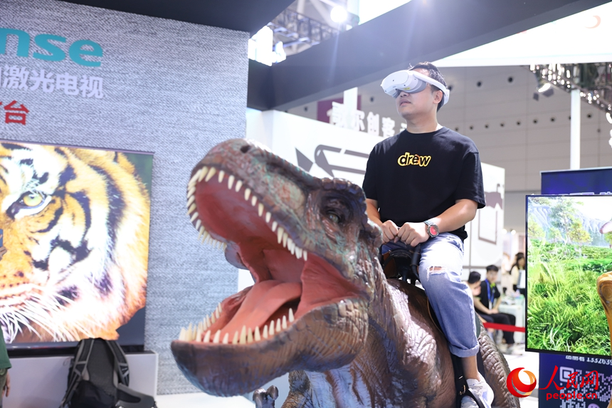 戴上VR設(shè)備,進(jìn)入“侏羅紀(jì)時(shí)代”。人民網(wǎng) 劉森君攝
