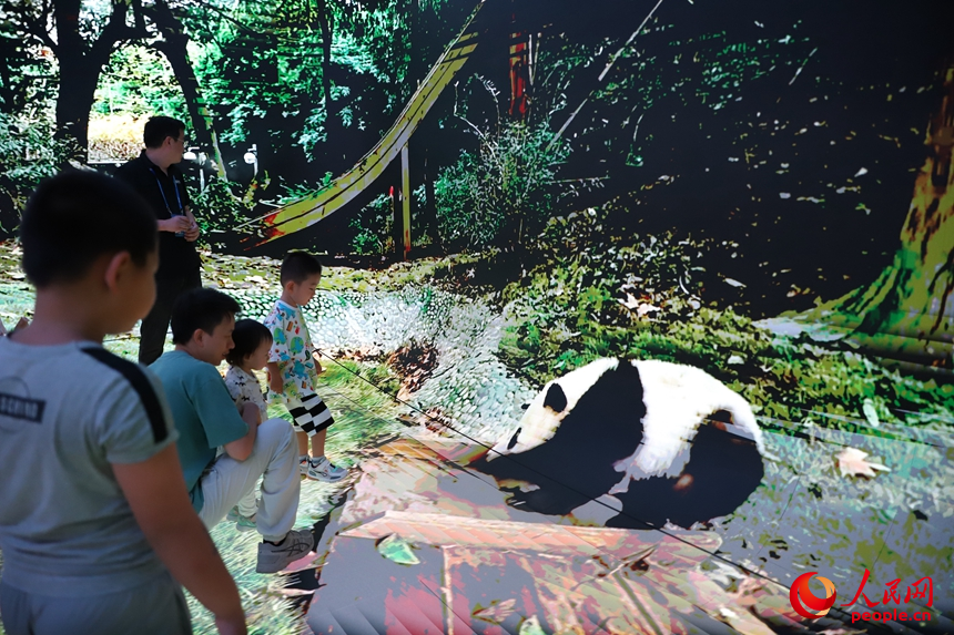 四川展區(qū),XR沉浸式體驗(yàn)空間讓觀眾“走進(jìn)”大熊貓基地。人民網(wǎng) 劉森君攝