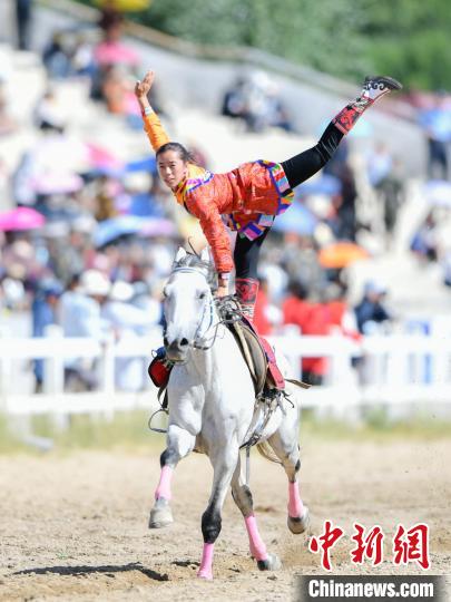 8月17日,西藏傳統(tǒng)體育項(xiàng)目——馬術(shù)表演亮相雪頓節(jié),在拉薩賽馬場開幕。民族傳統(tǒng)馬術(shù)表演內(nèi)容包括馬背上的舞蹈、馬上斬劈、馬上射箭、馬上敬酒、馬上拾哈達(dá)、多人多馬(疊羅漢)等10余個(gè)大項(xiàng)。當(dāng)天的活動(dòng),為民眾及游客帶來了一場視覺盛宴。