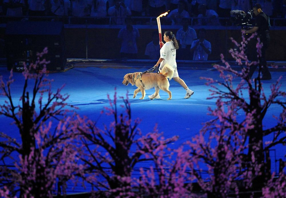 2008年9月6日,北京2008年殘奧會(huì)開幕式在國家體育場(chǎng)隆重舉行,火炬手平亞麗在進(jìn)行火炬?zhèn)鬟f。新華社記者王頌攝