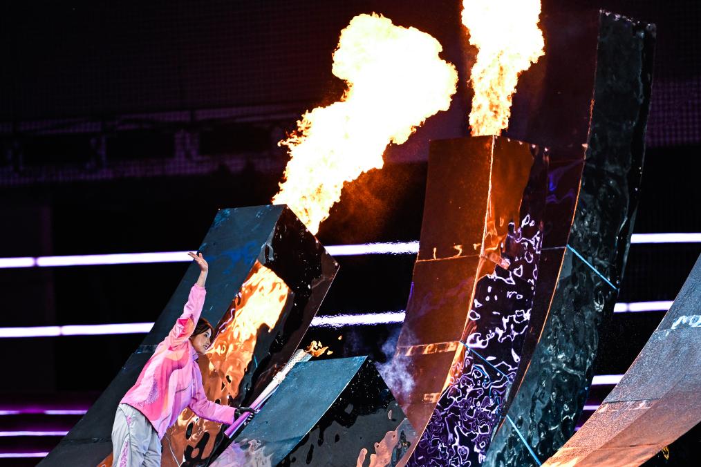 10月22日,最后一棒火炬手徐佳玲在開(kāi)幕式上點(diǎn)燃主火炬。新華社記者伍志尊攝