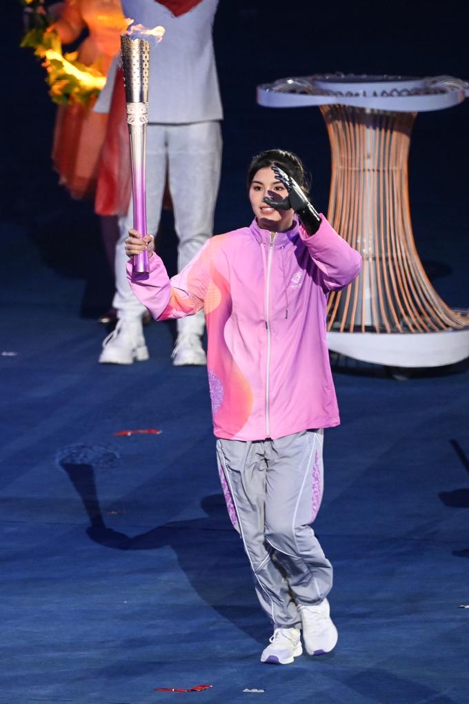 10月22日,最后一棒火炬手徐佳玲在開(kāi)幕式上。新華社記者黃宗治攝