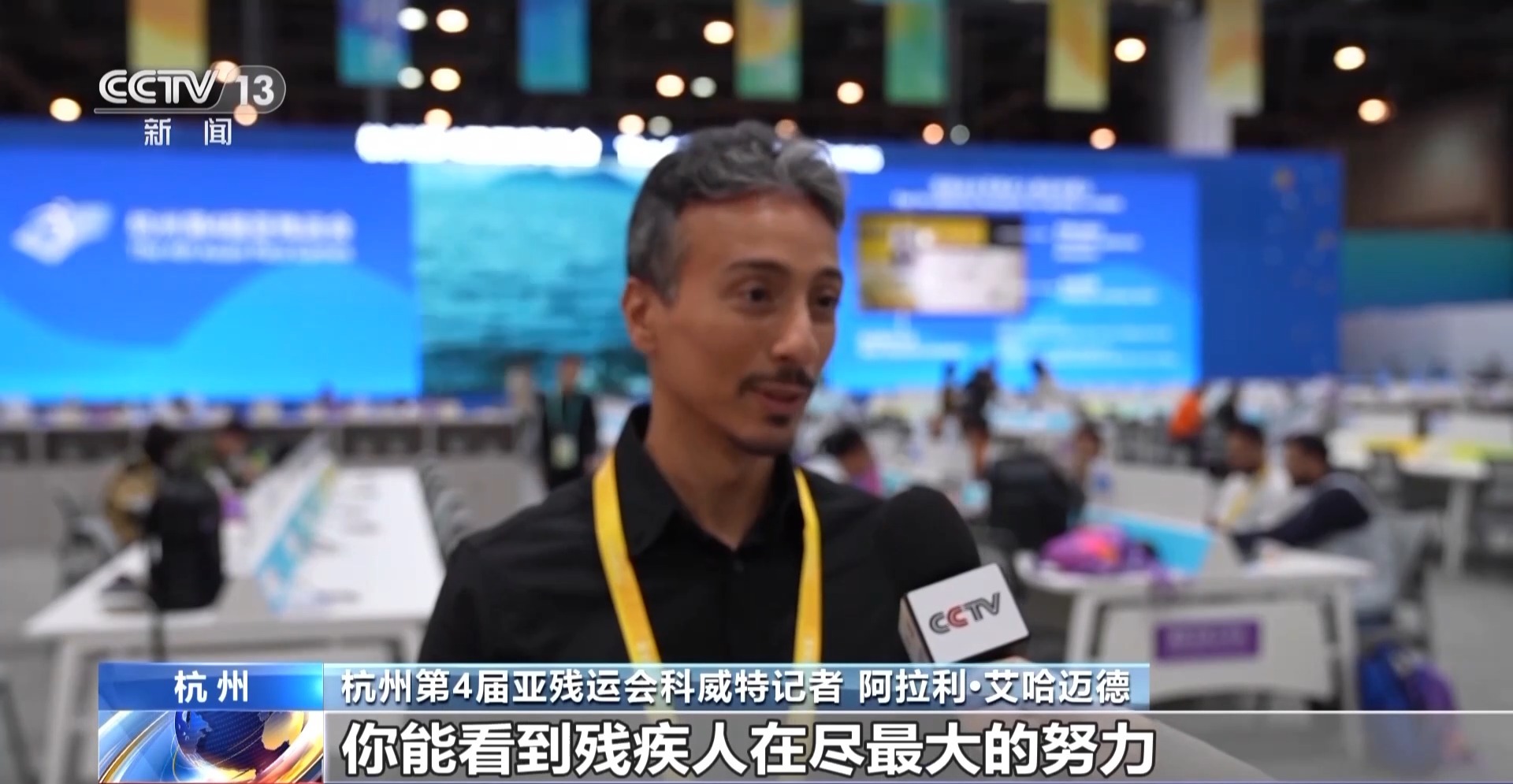 杭州第4屆亞殘運(yùn)會(huì)科威特記者 阿拉利 艾哈邁德:非常感人,你能看到殘疾人在盡最大努力完成所有事情,也能看到殘疾人和健全人之間強(qiáng)有力的聯(lián)系,他們像一個(gè)大家庭中的兄弟姐妹一樣互相支持。此外,開幕式呈現(xiàn)的顏色非常溫暖、好看,跟我們?cè)谇锾斓暮贾菘吹降木吧粯?。桂花的香味淡淡的,很清新、很好聞,我覺得這種花香在對(duì)我們表示歡迎,好像在說(shuō),這里氣候宜人,環(huán)境優(yōu)美,歡迎來(lái)玩。