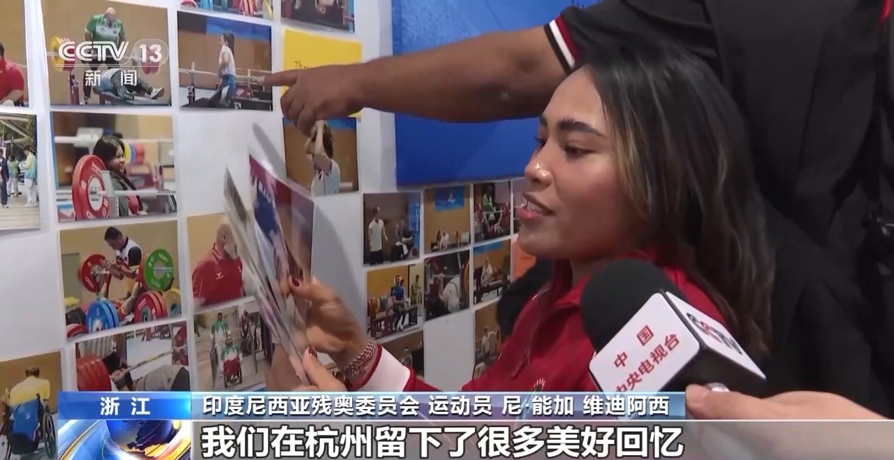 印度尼西亞殘奧委員會運動員 尼·能加 維迪阿西:這真的很棒,我們在杭州留下了很多美好的記憶。這是我第一次擁有這樣的照片,工作人員拍照之后會張貼在墻上,我們可以拿走,留下自己寫的卡紙信。
