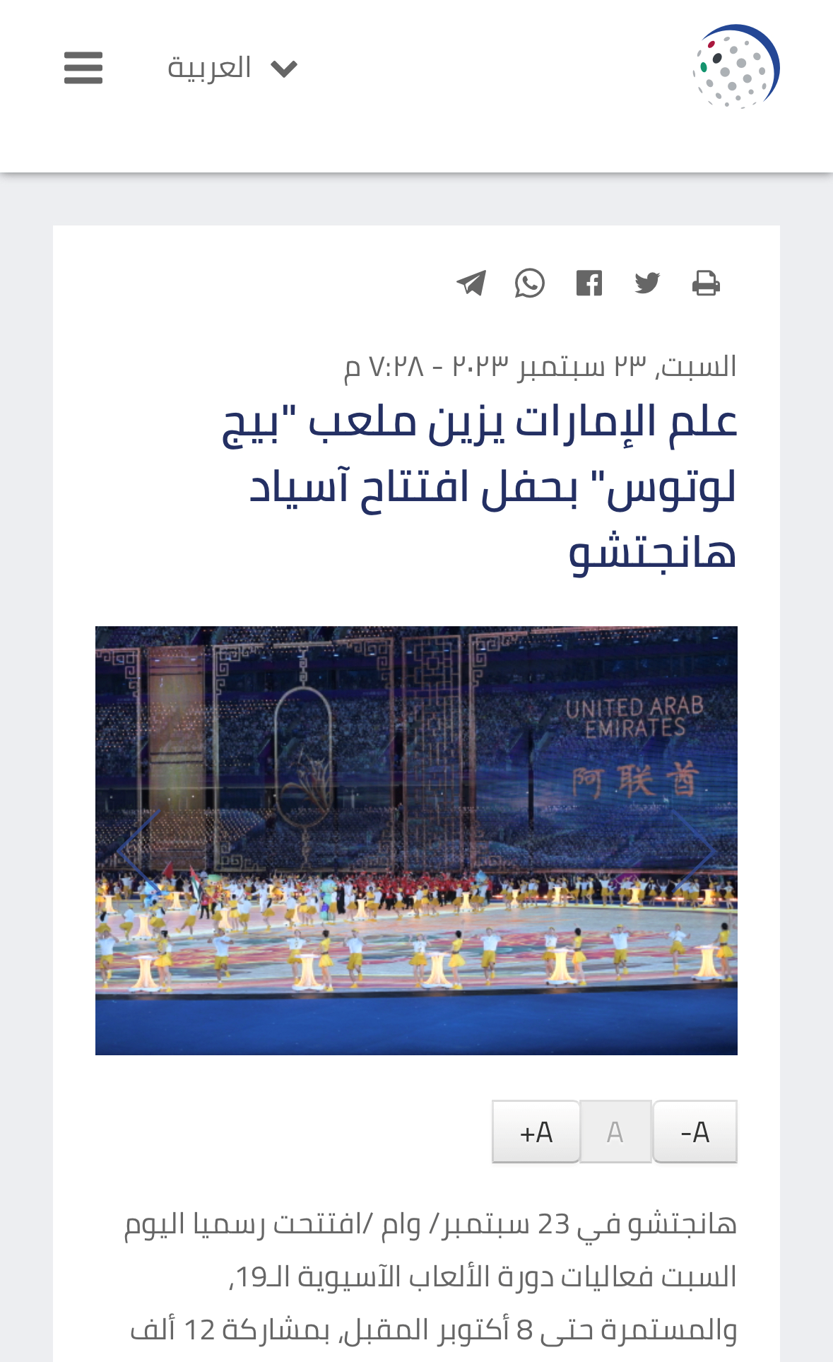 同樣在23日,阿聯(lián)酋國家通訊社(Emirates News Agency)發(fā)表題為《阿聯(lián)酋國旗點綴杭州亞運會“大蓮花”體育場》的報道。報道稱,中國國家主席習近平當晚宣布了亞運會的開幕。杭州亞運會的開幕式精彩紛呈,突出展現(xiàn)了主辦國的文化遺產(chǎn),重點關注可持續(xù)發(fā)展和環(huán)境保護領域的實踐,同時凸顯古代文明獨有的特征。杭州亞運會的舉辦正是收獲果實、收獲喜悅的時刻,東道主將與亞洲各國來賓共同分享。