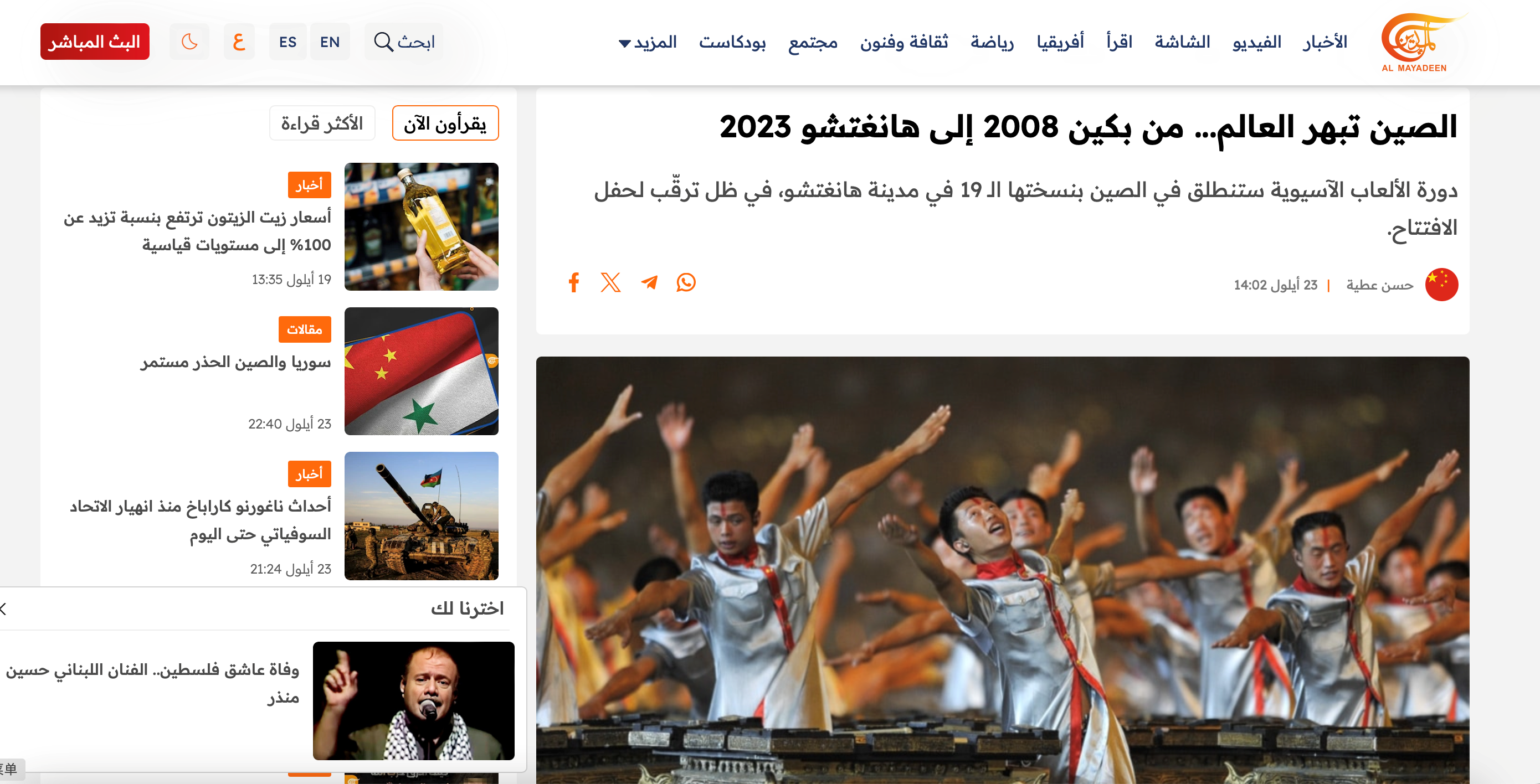 杭州亞運會璀璨綻放 中東各國媒體紛紛點贊