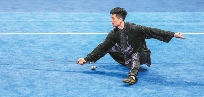 9月25日,武術(shù)男子太極拳太極劍全能決賽,中國體育代表團(tuán)選手高浩楠在比賽中。