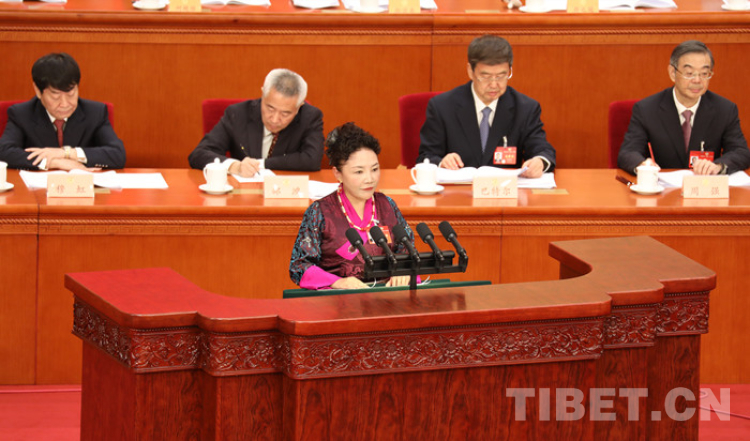 圖為全國政協(xié)委員卓嘎在作大會發(fā)言   攝影:桑吉