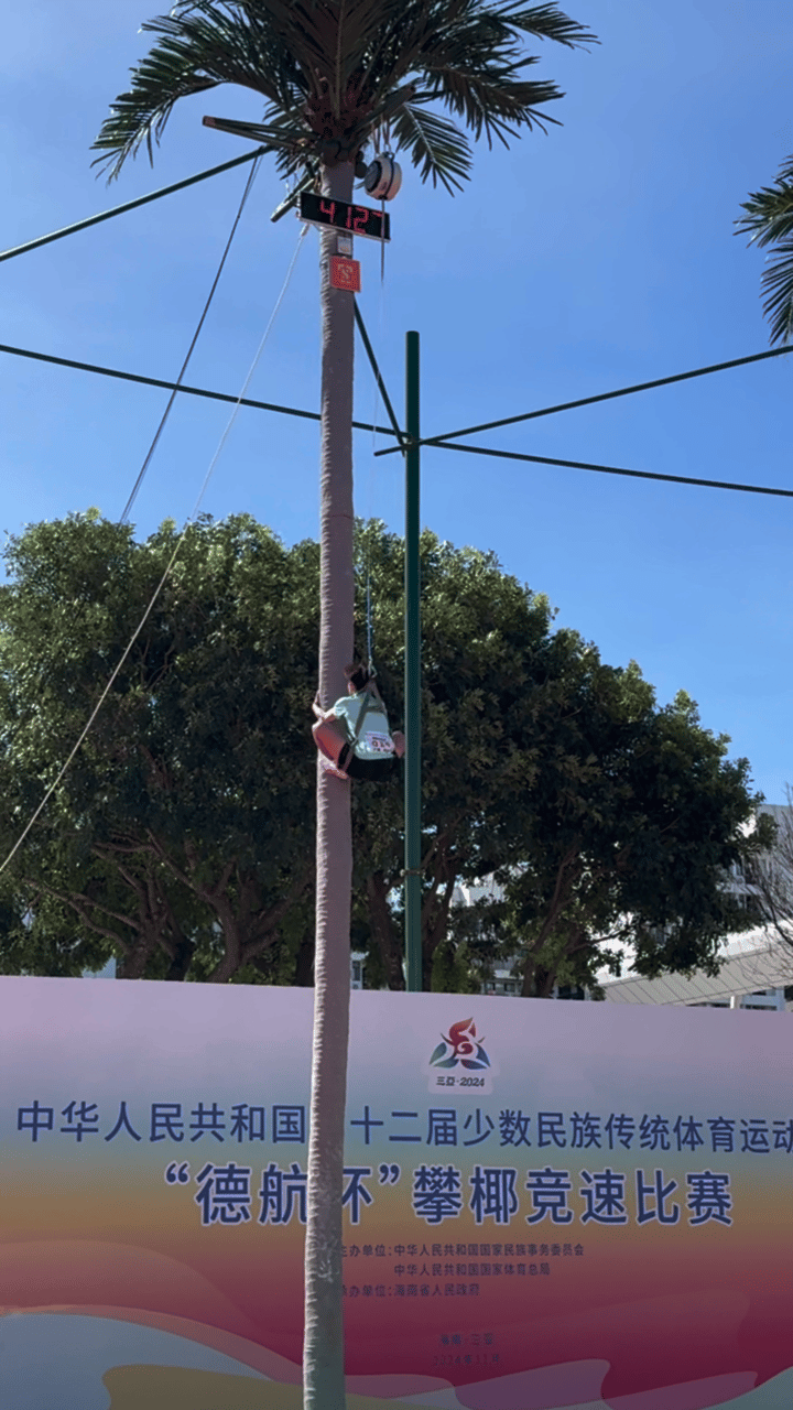 今年,攀椰競速首次被列為第十二屆全國少數(shù)民族傳統(tǒng)體育運動會(以下簡稱“運動會”)正式競賽項目。