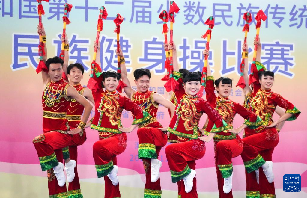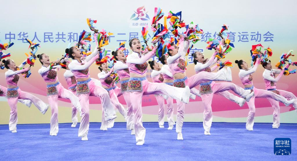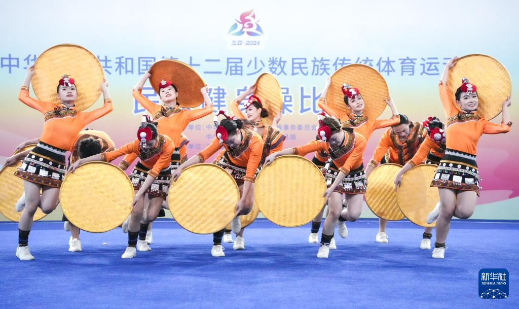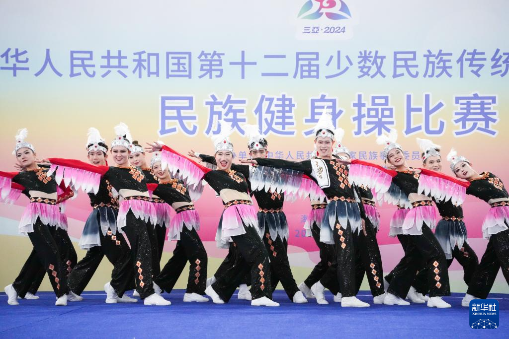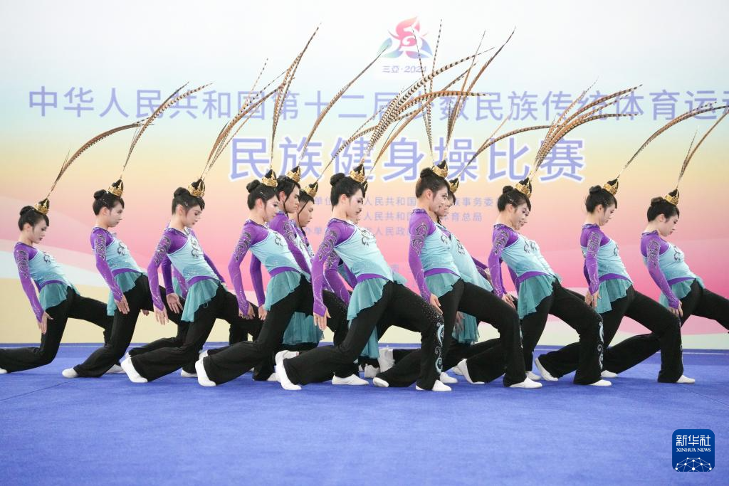 當(dāng)日,第十二屆全國(guó)少數(shù)民族傳統(tǒng)體育運(yùn)動(dòng)會(huì)民族健身操自選套路第一輪比賽在西南大學(xué)三亞中學(xué)體育館舉行。