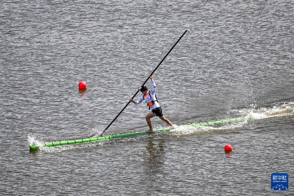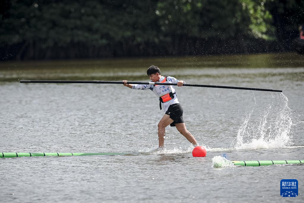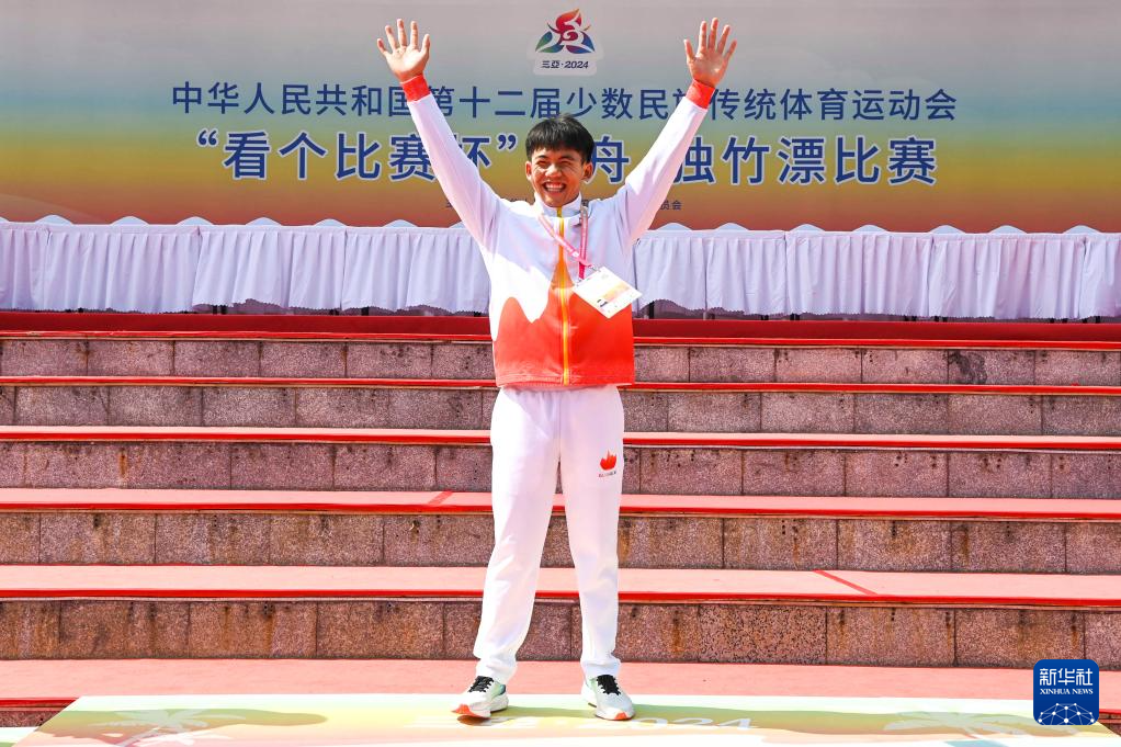 當(dāng)日,第十二屆全國少數(shù)民族傳統(tǒng)體育運(yùn)動會獨(dú)竹漂男子組60米直道賽在海南省三亞市舉行。