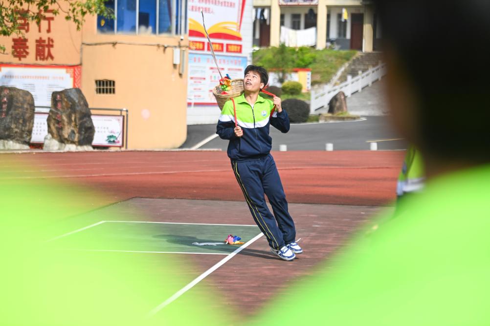 11月6日,廣西玉林市民族中學(xué)的學(xué)生們在進(jìn)行背簍繡球的比賽