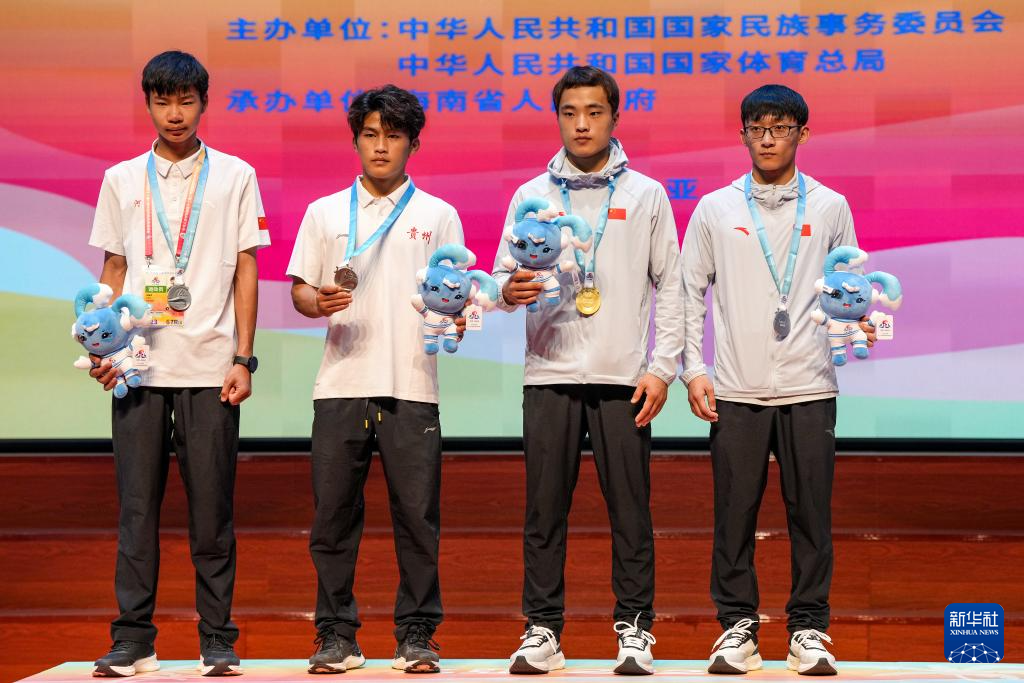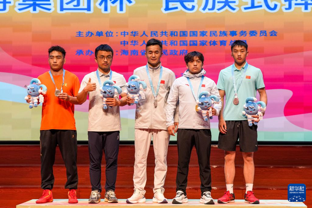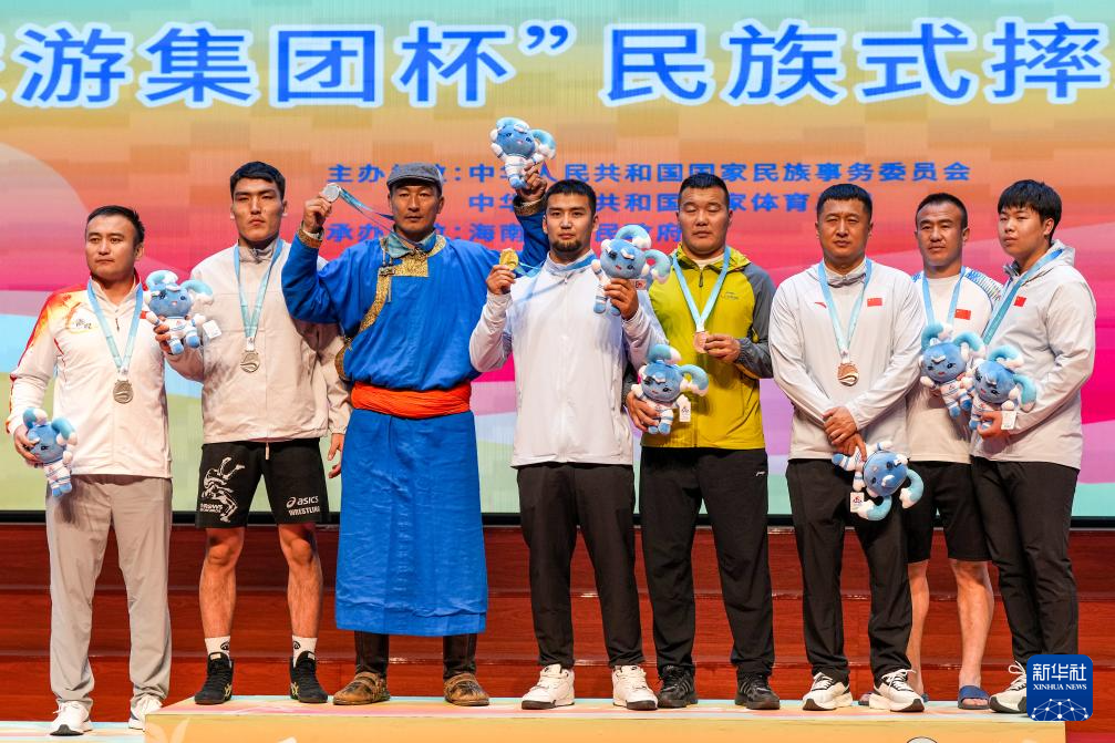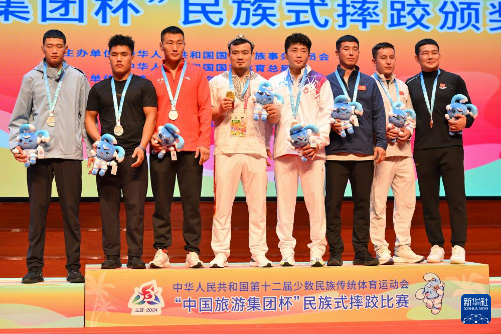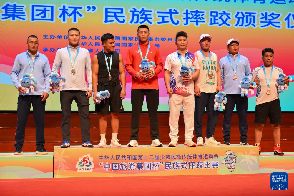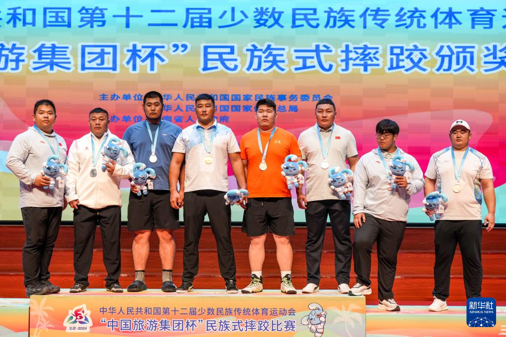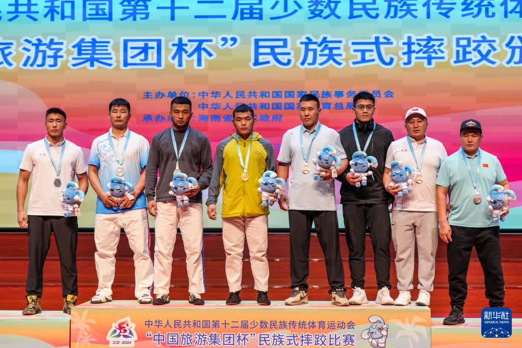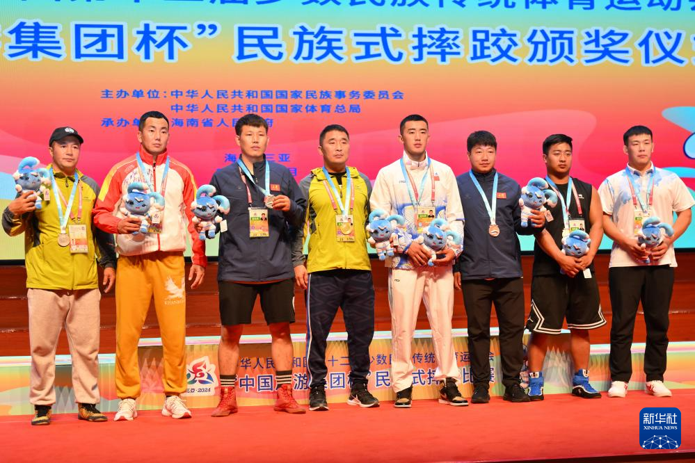 當(dāng)日,第十二屆全國少數(shù)民族傳統(tǒng)體育運動會民族式摔跤項目頒獎儀式在海南省三亞市舉行。
