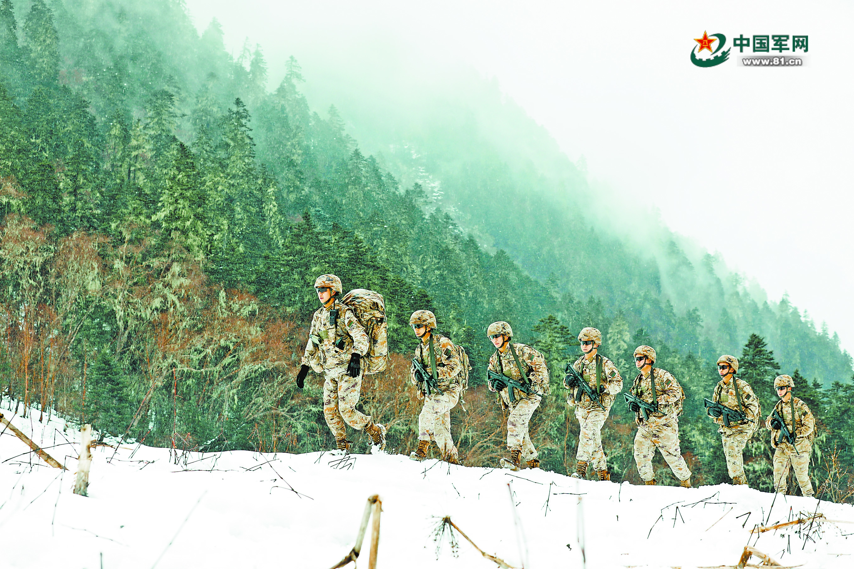 隨著海拔不斷升高,官兵的呼吸變得急促。大家默契地控制著步幅,確保隊(duì)形不被打亂、人員不掉隊(duì)。