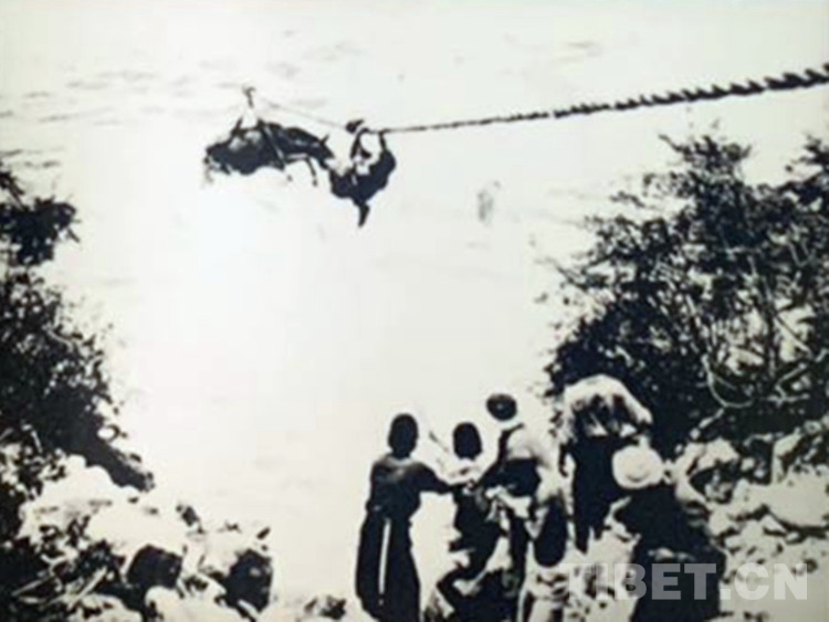 圖為背夫們渡河時使用溜索。