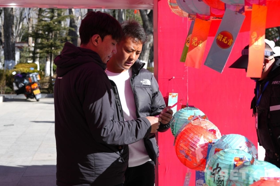 拉薩市龍王潭公園,群眾在元宵活動現(xiàn)場興致勃勃地猜燈謎 攝影:張藝彤