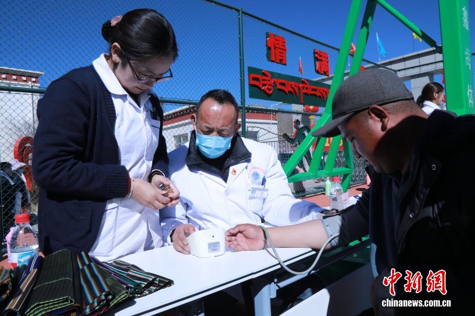 2月6日,春節(jié)、藏歷新年來臨之際,西藏拉薩市墨竹工卡縣殘疾人聯(lián)合會(huì)在墨竹工卡縣殘疾人綜合服務(wù)中心開展“殘疾人文化進(jìn)社區(qū)”活動(dòng),豐富殘疾人精神文化生活,傳遞社會(huì)溫情?;顒?dòng)現(xiàn)場張燈結(jié)彩,歌舞節(jié)目輪番上演,充分展現(xiàn)殘疾人積極向上的精神風(fēng)貌。工作人員為殘疾人送上慰問品與雙節(jié)祝福;義診區(qū)提供健康檢測、康復(fù)指導(dǎo)服務(wù);手工藝展區(qū)陳列著殘疾人制作的藏式手工藝品;趣味游戲區(qū)開展無障礙互動(dòng)活動(dòng),現(xiàn)場歡聲笑語不斷。圖為醫(yī)生為殘疾人測量血壓。