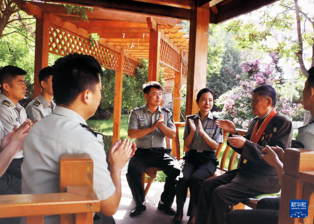 黃宗德給青年官兵講述戰(zhàn)斗故事(2019年7月27日攝)。新華社發(fā)(王中旺 攝)