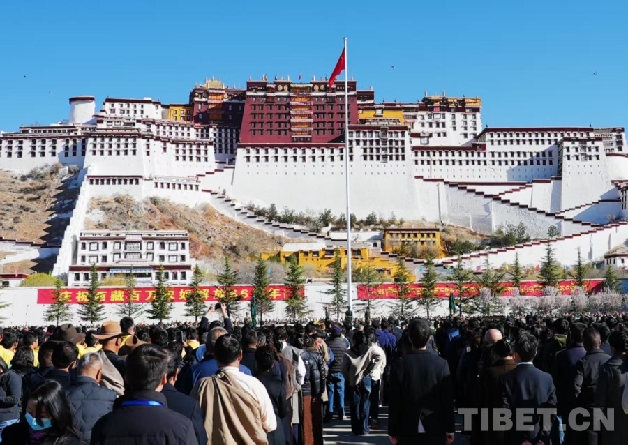 圖為2025年3月28日,國(guó)旗在布達(dá)拉宮廣場(chǎng)升起攝影:旦曲