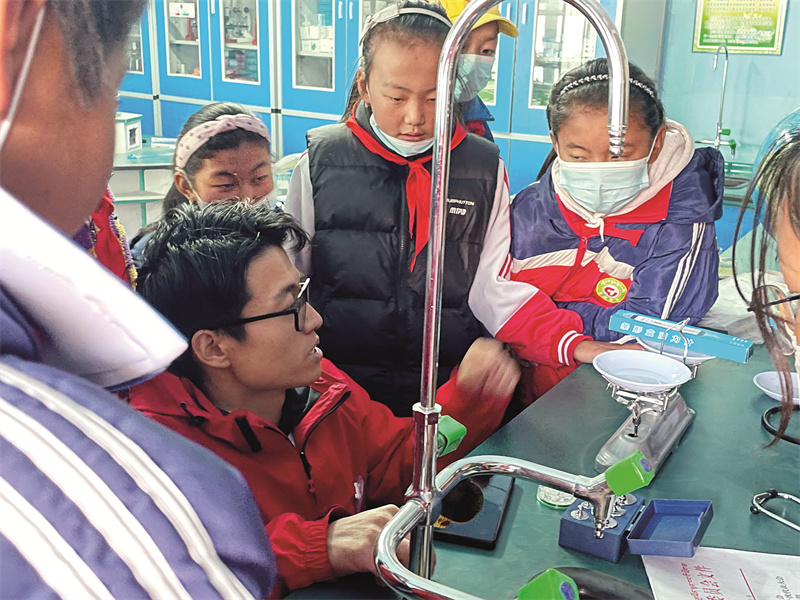 后來經(jīng)過層層選拔,王育帥成為了第十四批支教團隊中的一員,在山南市瓊結縣完全小學負責一、二年級的科學課教學任務。在教學實踐中,他發(fā)現(xiàn)孩子們都有著無窮的好奇心,于是常常在課堂上啟發(fā)學生們領悟學習的意義,鼓勵他們立下階段性或者更長遠的目標?!拔乙步?jīng)常在課堂上向學生們展示一些有趣的科學現(xiàn)象,讓他們根據(jù)現(xiàn)象探索背后的原理,很多學生還會利用周末時間主動找我探討科學問題?!?/p>