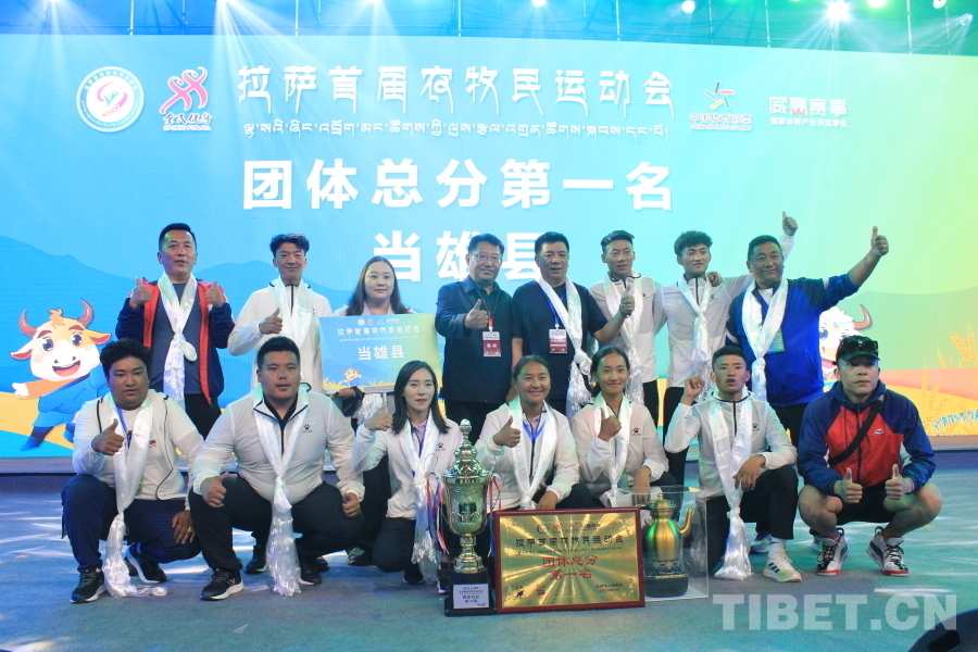 圖為團體總分第一名當(dāng)雄縣代表隊合影 攝影:張曉琪
