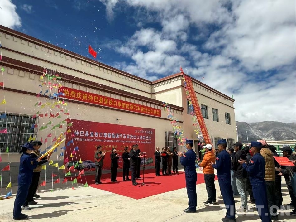 圖為里孜口岸首批新能源汽車出口通關(guān)儀式現(xiàn)場 攝影:白瑪曲珍