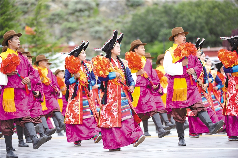 日喀則方隊(duì)。本網(wǎng)記者 旦增蘭澤 攝
