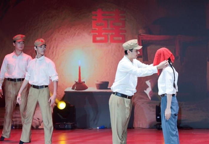 舞蹈《天山鑄芳華》再現(xiàn)兵團軍墾戰(zhàn)士在地窩子里舉辦婚禮的溫情場景。