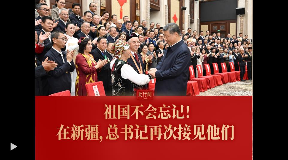 習近平23日下午接見新疆各族各界代表。代表中,我們發(fā)現了這4位,他們是“七一勛章”獲得者魏德友、“七一勛章”獲得者買買提江·吾買爾、“人民楷?!辈既悻敽埂っ斩?、“人民衛(wèi)士”巴依卡·凱力迪別克。習近平總書記微笑著同他們親切握手。