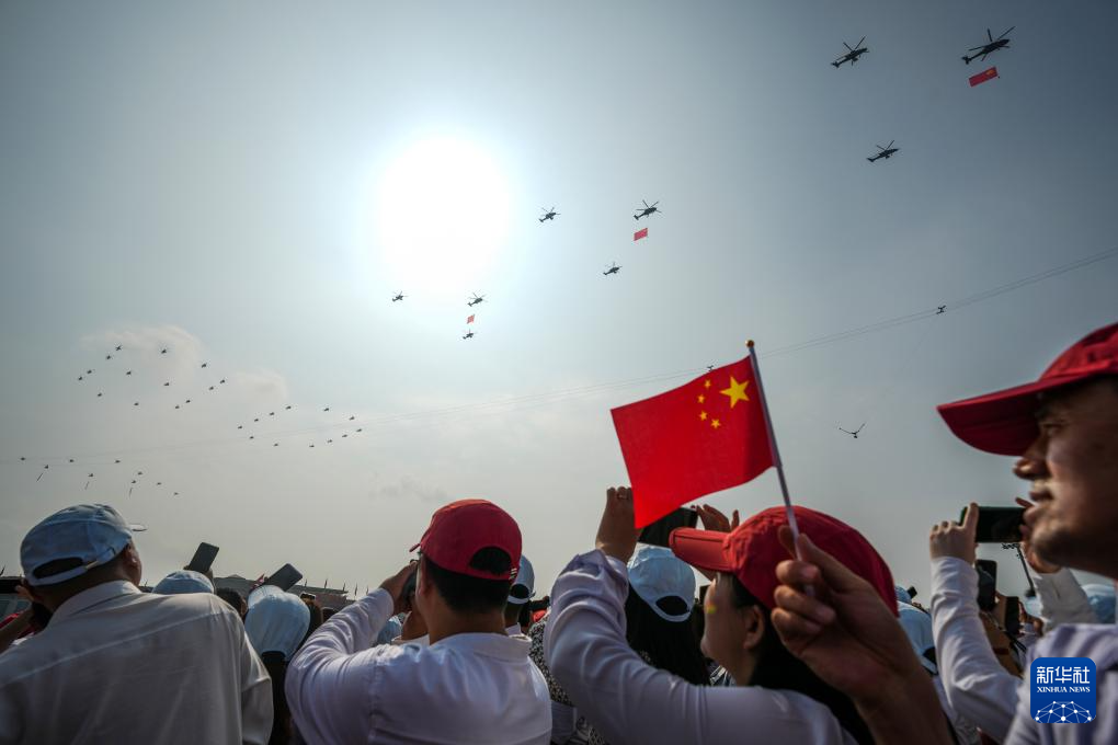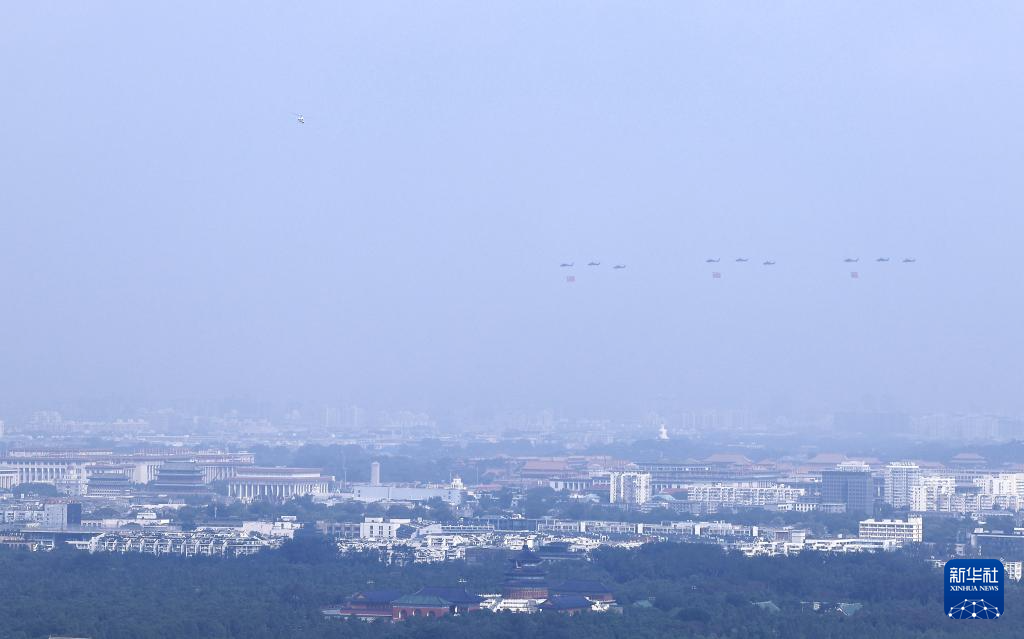 9月3日,紀(jì)念中國人民抗日戰(zhàn)爭暨世界反法西斯戰(zhàn)爭勝利80周年大會在北京隆重舉行。這是空中護(hù)旗梯隊。