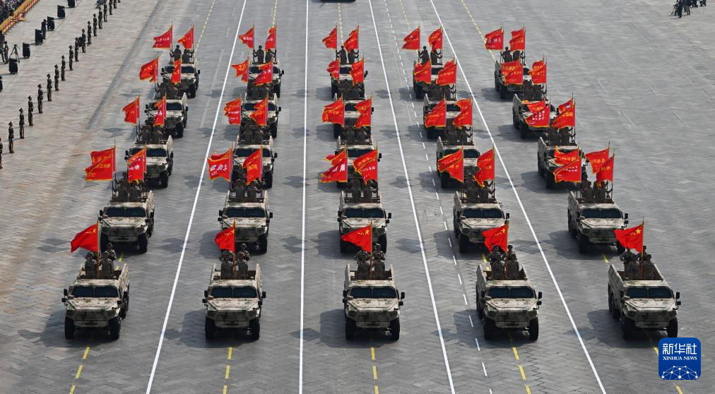 9月3日,紀(jì)念中國人民抗日戰(zhàn)爭暨世界反法西斯戰(zhàn)爭勝利80周年大會在北京隆重舉行。這是裝備方隊接受檢閱。