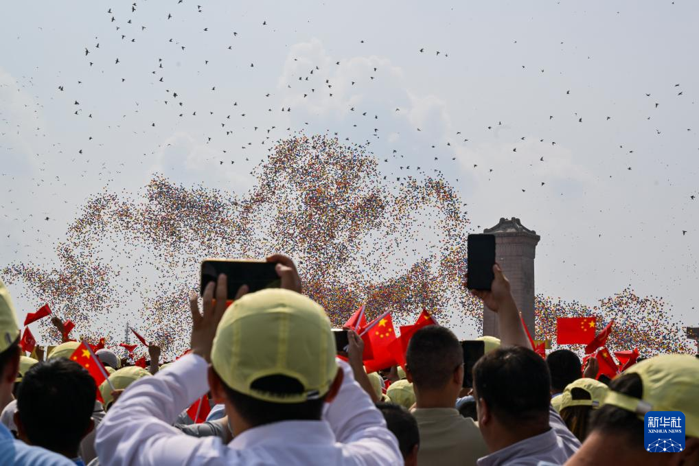 9月3日,紀(jì)念中國人民抗日戰(zhàn)爭暨世界反法西斯戰(zhàn)爭勝利80周年大會(huì)在北京隆重舉行。這是紀(jì)念大會(huì)現(xiàn)場放飛氣球和鴿子。