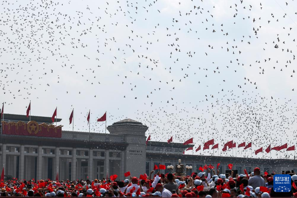 9月3日,紀(jì)念中國人民抗日戰(zhàn)爭暨世界反法西斯戰(zhàn)爭勝利80周年大會(huì)在北京隆重舉行。這是紀(jì)念大會(huì)現(xiàn)場放飛鴿子。