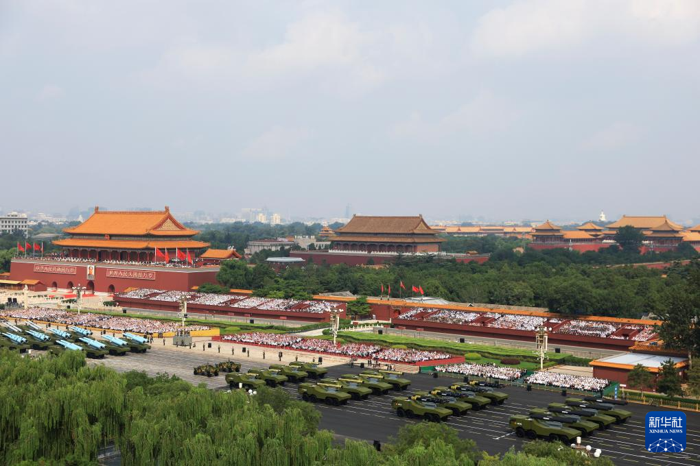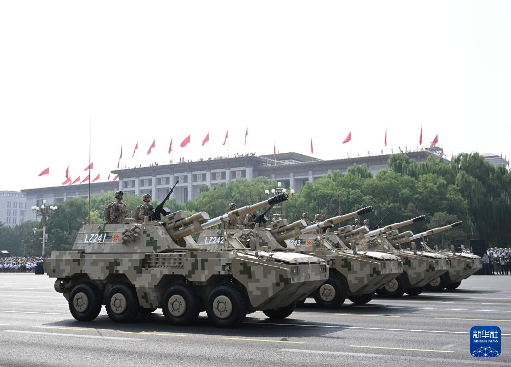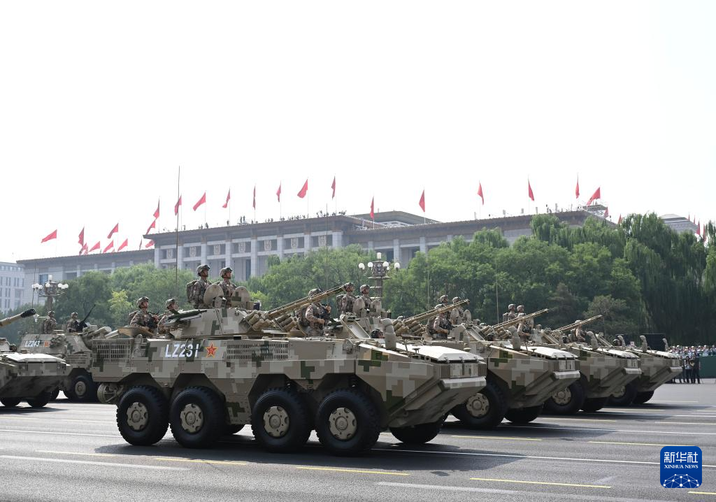 9月3日,紀(jì)念中國人民抗日戰(zhàn)爭暨世界反法西斯戰(zhàn)爭勝利80周年大會(huì)在北京隆重舉行。這是裝備方隊(duì)接受檢閱。